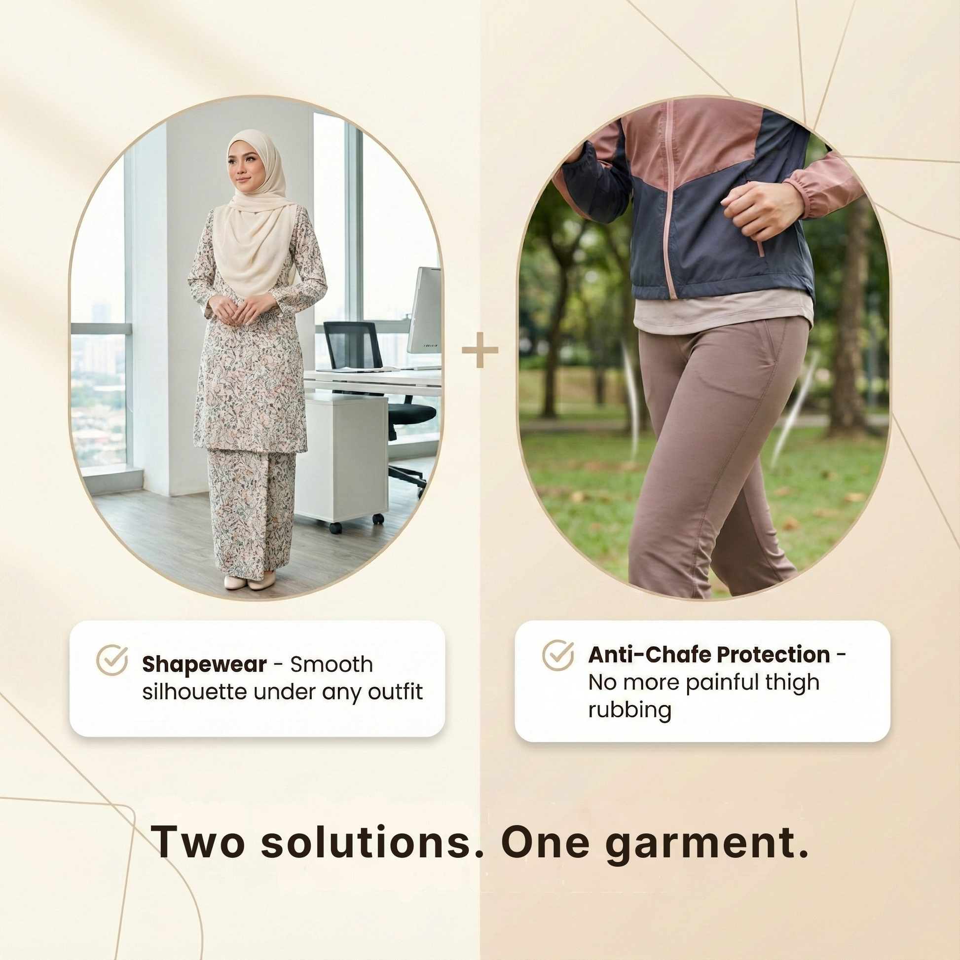 Shapewear terlalu pendek, peha masih chafe. Akhirnya beli produk anti-chafe berasingan - buang duit.